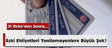 Eski Ehliyetleri Yenilemeyenlere Büyük Şok!Eski tip sürücü belgesini yenilemeyeneler 31 Ekim’den sonra 7 bin liradan fazla ödemek zorunda kalacaklar. 1,9 milyon kişi hâlâ eski tip sürücü belgesini kullanıyor. 31 Ekim’e kadar yenilenmeyen ehliyetler geçersiz sayılacak ve Kasım itibarıyla B sınıfı ehliyet için 7 bin 438 lira ödeme yapılması gerekecek. Yenileme için randevu Alo 199, mobil uygulama veya e-Devlet üzerinden […] -