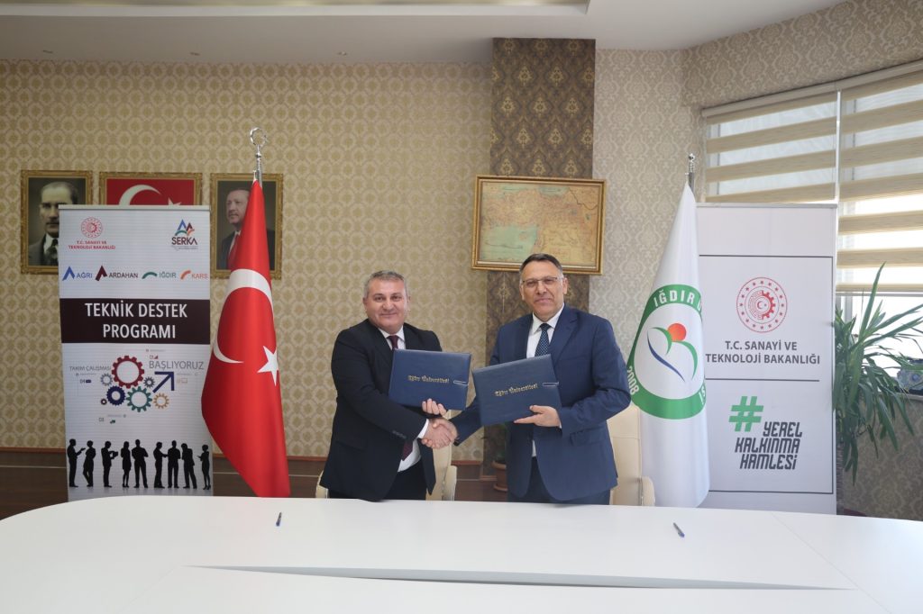 İmza töreninde; SERKA Iğdır Yatırım Destek Ofisi (YDO) Koordinatörü Ramazan Mutlu Doğaner, Üniversitenin Proje Geliştirme Ofisinden Doç. Dr. Aliihsan Şekertekin ve Dr. Öğr. Üyesi Belkıs Muca Yiğit de hazır bulundu.
